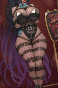 縄で縛られたバニーカリンが電マ責めされたり…♡