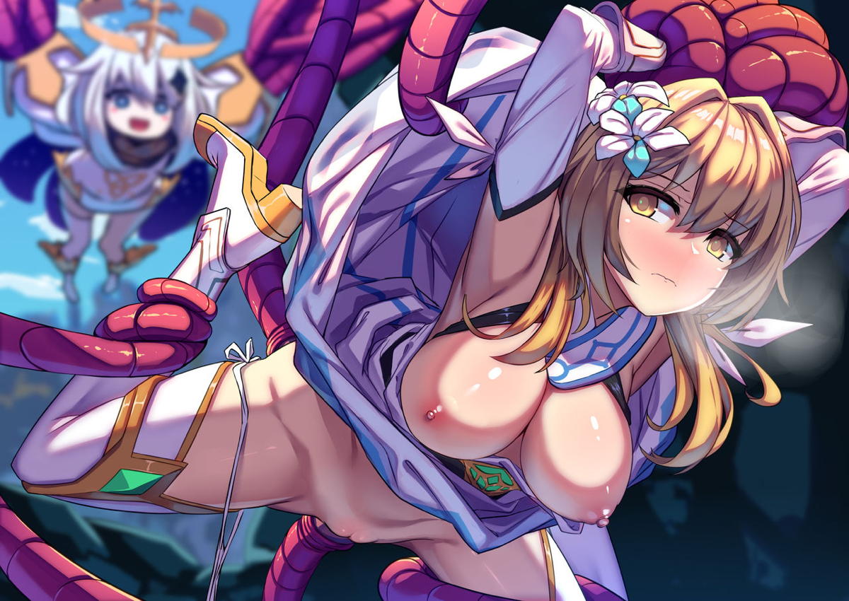 着衣の申鶴が正常位で犯されて潮吹きアクメしちゃう♡