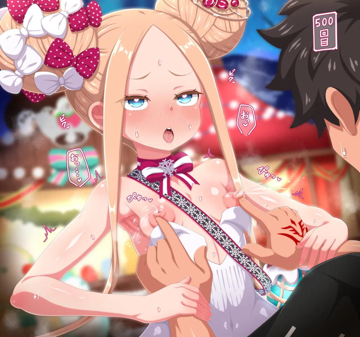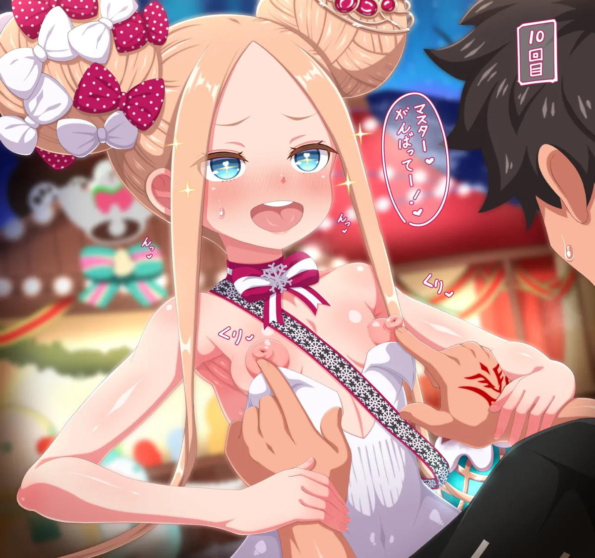 乳首を弄られて噴乳しちゃうサンタアビーちゃん