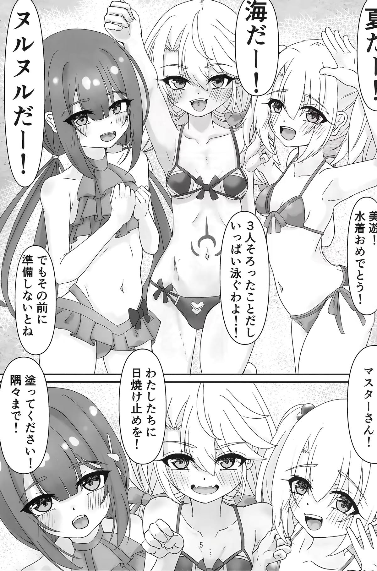 ビキニ姿のイリヤ&美遊がおじさん達と乱交する♡